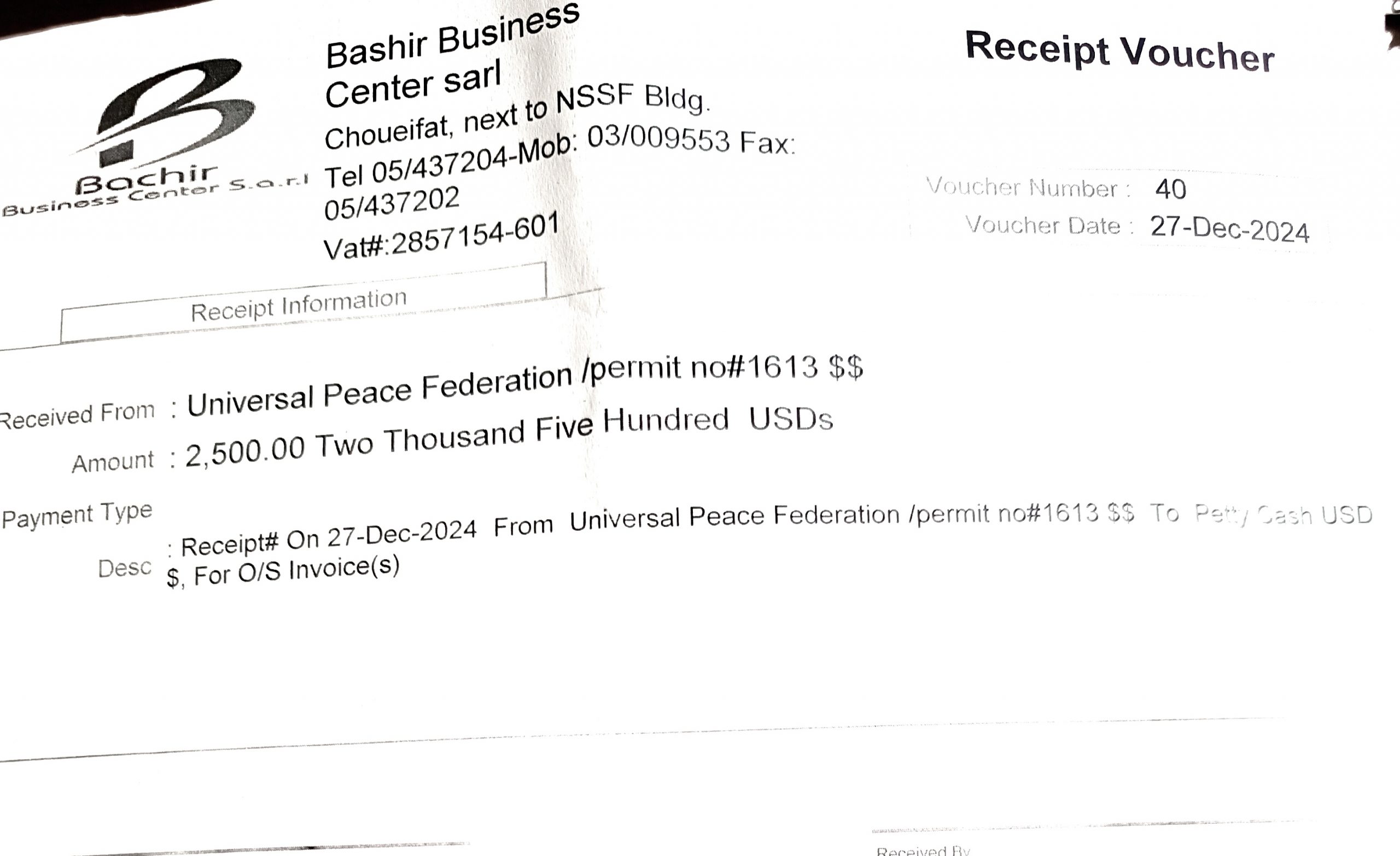 IRFF Deutschland hat zur Beschaffung der Lebensmittel die nötigen Mittel in Höhe von 2.500,-$ zur Verfügung gestellt (s.h. Beleg).